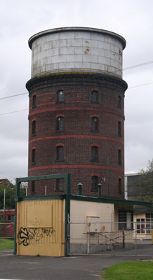 We left the cemetery, crossed Champion Road and found ourselves outside the old Newport railway workshops. These were originally built in the 1880s for the construction and maintenance of railway rolling stock and continued in operation until 1992. At its height, some 5000 people were employed here. There are several notable Victorian brick buildings – sheds, a station, a clock tower and a beautiful circular water tower.