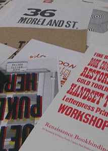 Full-day workshops are available at which you can learn to set type and print by hand, after which access to the studio is available for those wishing to pursue their own small printing projects, such as invitations, posters, even books. These are some examples of work done in the studio.