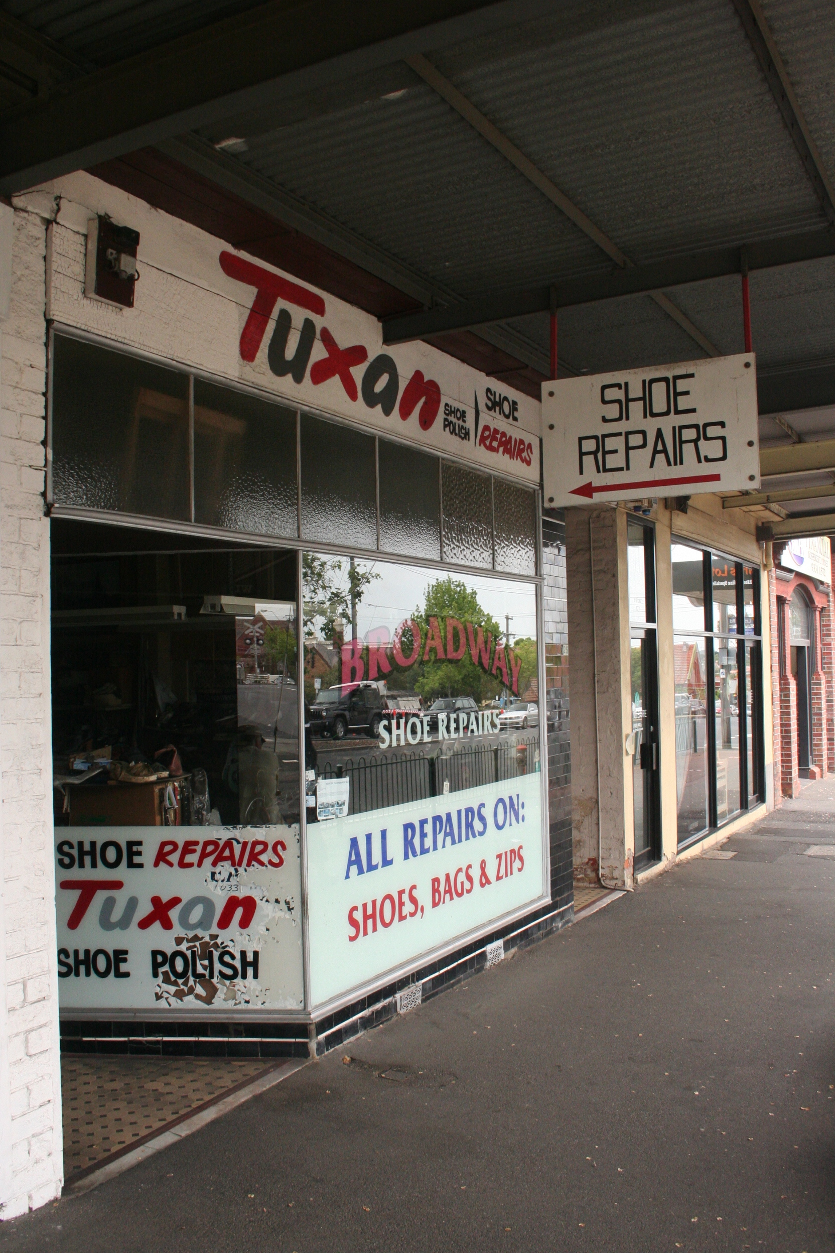 However, I did come across a charming shoe repair shop on Buckley Street, covered with advertising for Tuxan, once a popular brand of polish that would have gleamed on many a well-made Essendon shoe.