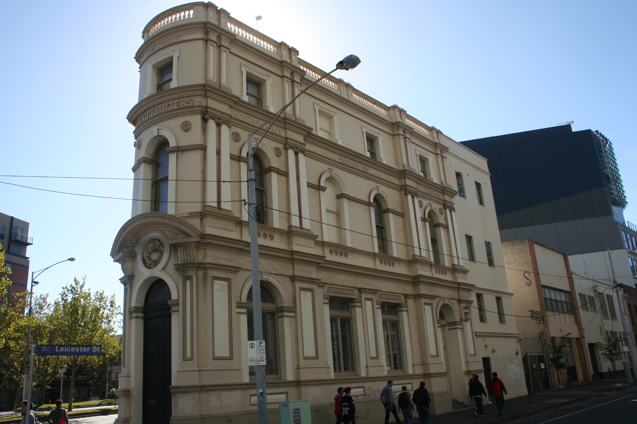 Elizabeth Street marks the point on Victoria Street where you cross from North Melbourne into Carlton. As with the western section of Victoria Street, there’s a great diversity of things to see along here. I finished the last post with a reference to uncontrolled apartment construction. In contrast, on the other side of Elizabeth Street is the elegant former HQ of the Rechabites, a Victorian temperance society devoted to preventing the evils of strong drink. They must have been a reasonably powerful and wealthy organisation to afford a building like this, in this location. (Here’s my piece about the temperance movement in Melbourne.)