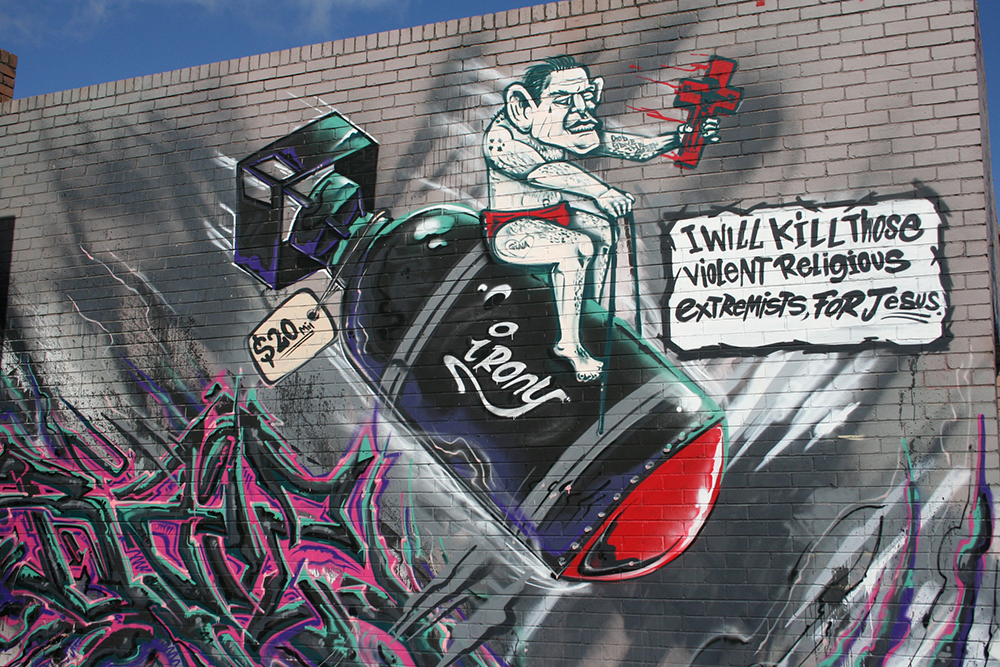 How long will these survive, I wonder? I doubt they will be around as long as the Robur or Dunlop signs, but it’s interesting to speculate what future generations might make of Tony Abbott in his speedos astride a missile named ‘Irony’.