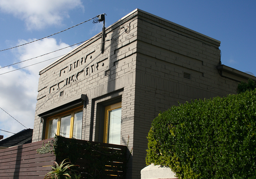 Picking up my walk from Sydney Road, Brunswick, I headed east along Blyth Street as far as Nicholson Street. Turning south, at number 136A I came across a small brick building with the words ‘Dairy & Milk Bar’ in art deco lettering, moulded out of concrete. That tells us that the building is most likely late 1930s.