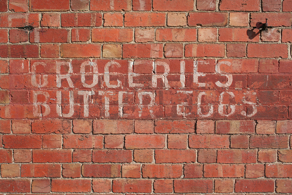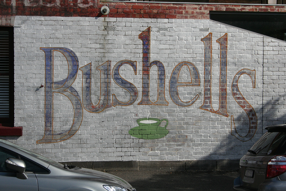 You can see the kind of effect they were aiming at if you wander down Rathdowne Street, where another Bushells sign survives in original condition, on the wall of another old grocer’s shop.